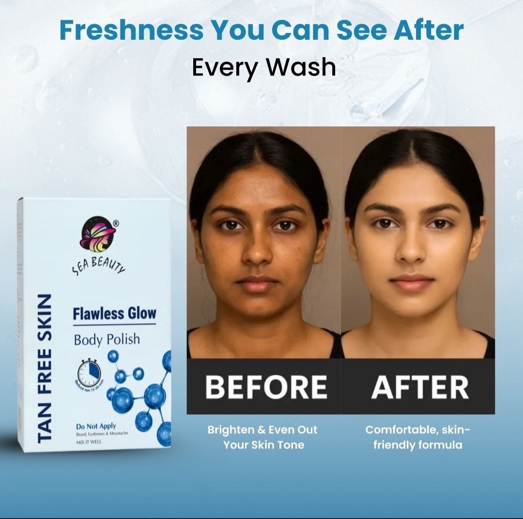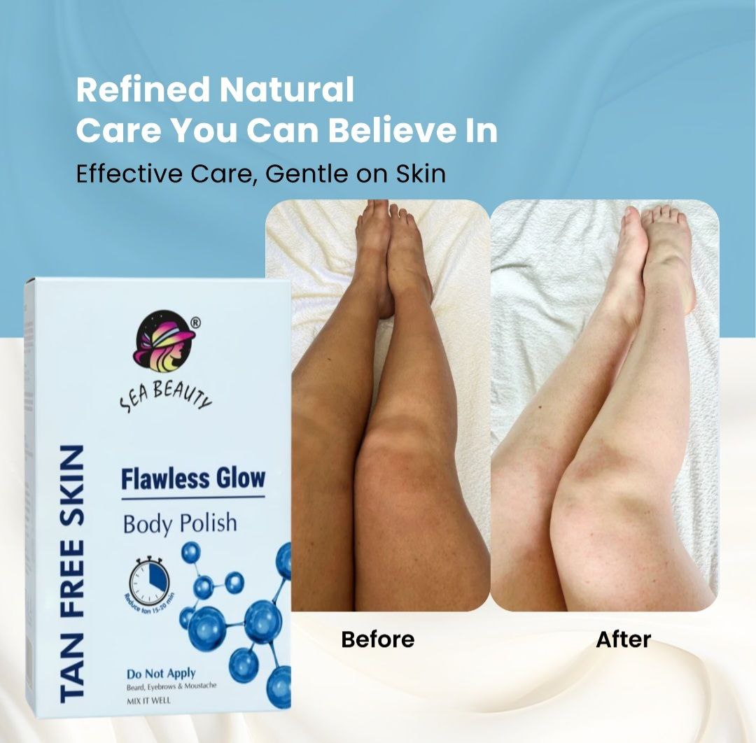 Sea Beauty TAN Polish Face & Body transforms dull, tanned, and uneven skin into radiant, soft, and glowing skin. With consistent use, it helps maintain an even-toned, polished appearance—making it your go-to solution for instant brightness and long-lasting confidence.